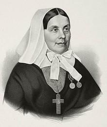 ![]() Екатери́на Миха́йловна Баку́нина (19 [30] августа 1810 или 1811, Санкт-Петербург — 6 [19] мая 1894, село Казицино, Тверская губерния) — сестра милосердия, героиня двух войн XIX века. Хирург Николай Иванович Пирогов, говоря о неоспоримом вкладе в мировую историю русских сестёр милосердия, к наиболее выдающимся среди них относил Екатерину Бакунину. Показывать: |