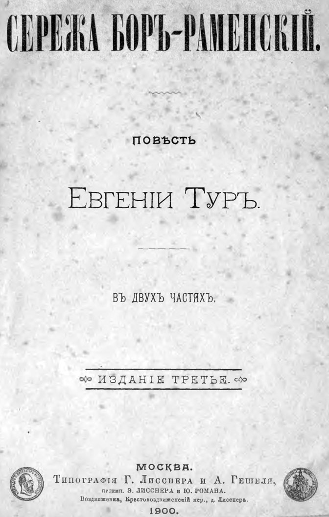 Вы здесьСережа Боръ-Раменскiй (fb2) Евгения Тур Сережа Боръ-Раменскiй [старая орфография] 1727K, 330 с. издано в 1900 г. Добавлена: 26.04.2020 АннотацияПовесть «Сережа Бор-Раменский» («Сергей Бор-Раменский») впервые появилась в 1888 году в журнале "Детский отдых", где Е. Тур была постоянной сотрудницей. Повесть печаталась весь год, во всех 12-ти номерах. Позже неоднократно переиздавалась, последний раз в 1916 году. С тех пор не была издана ни разу, незаслуженно забыта. Впечатления о книге: |