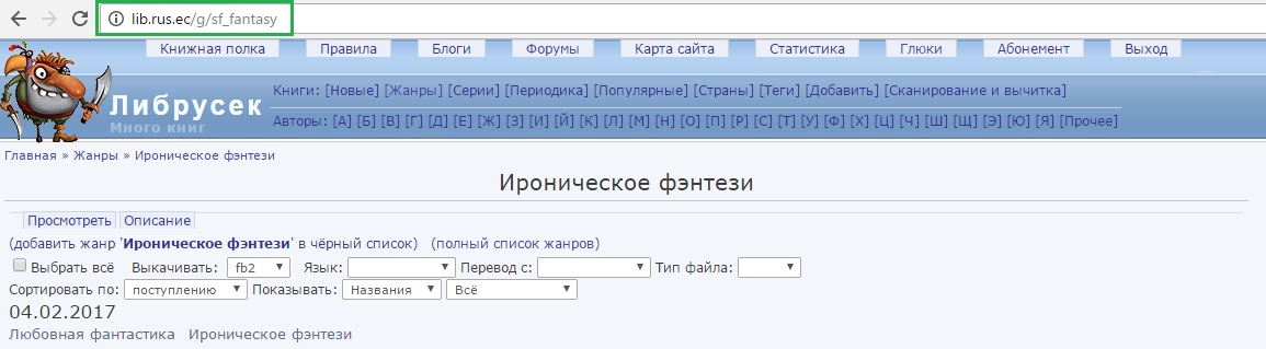 При выборе жанра Фэнтези выдается Ироническое фэнтези.
